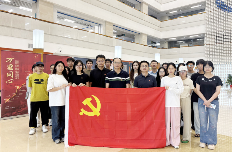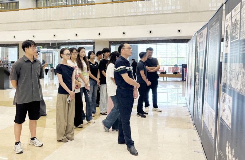 9月23日,艺术与设计学院组织学院本硕学生党支部党员到图书馆参观纪念中国人民抗日战争暨世界反法西斯战争胜利80周年“华侨与抗战”图片展,学院党委书记李愿方、研究生党支部书记杨晶、学生第一党支部书记丘庆达、学生第二党支部书记韩奇共同前往。